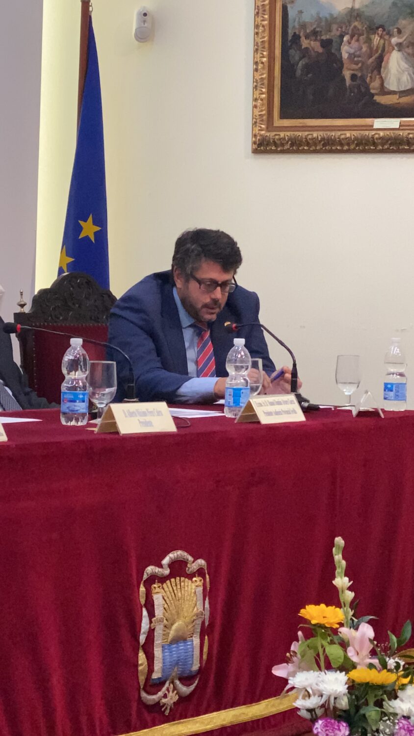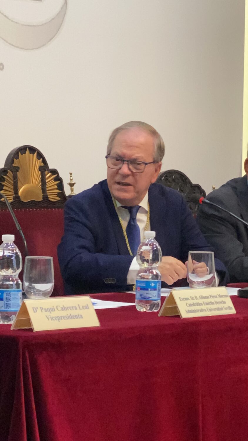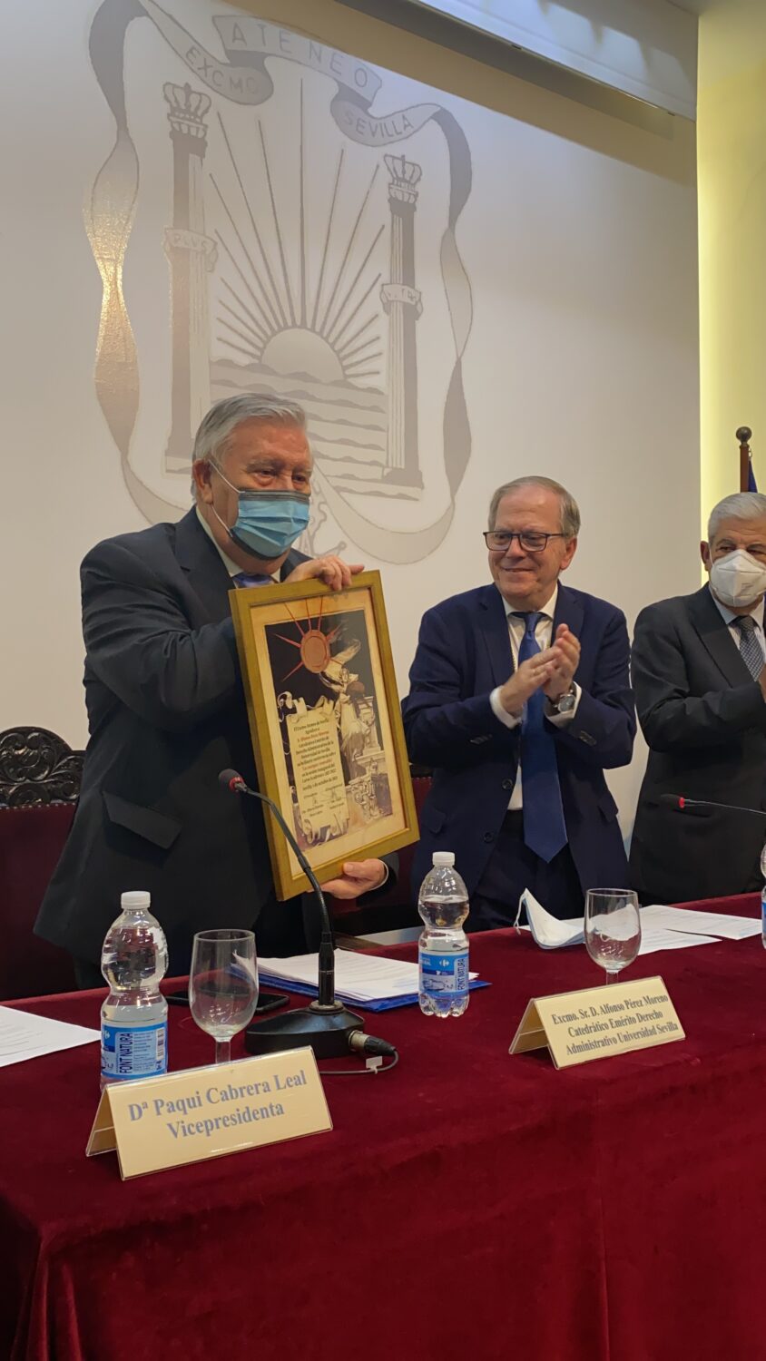 El pasado martes día 5 de octubre, en el salón de actos del Ateneo de Sevilla se procedió al acto-conferncia de apertura del curso 2021-2022. El acto comenzó con la foto de familia en el patio de la casa, pasando al salón donde se conformó la mesa presidencial que fue conpuesta por: D. Alberto Máximo Pérez Calero, Presidente del Ateneo de Sevilla, D. Alfonso Pérez Moreno, Catedrático Emérito de Derecho Administrativo de US, D. Manuel Damián Álvarez García, Profesor Titular de Derecho Administrativo y Dña. Francisca Cabrera , Vicepresidenta del Ateneo de Sevilla.
