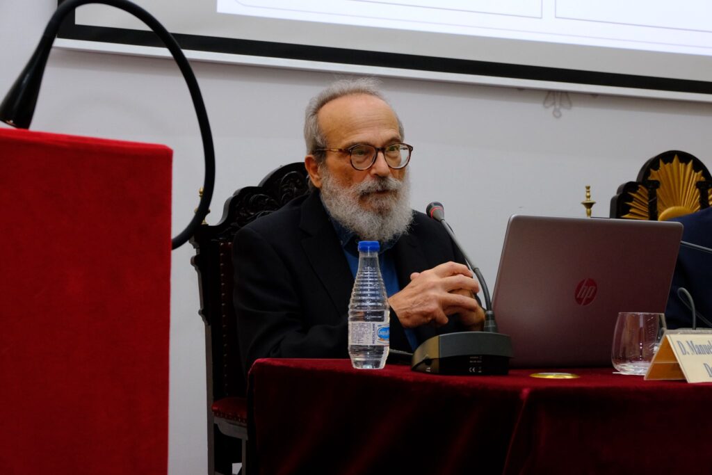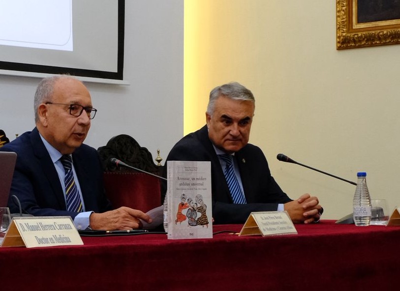 El acto contó con la intervención de sus autores, D. Manuel Herrera Carranza, Doctor en Medicina y Jefe del Servicio (jubilado) de Cuidados Intensivos del Hospital Universitario Juan Ramón Jiménez de Huelva, y D. Esteban Moreno Toral, Catedrático de Historia de la Farmacia de la Universidad de Sevilla y Presidente de la Fundación Avenzoar. Presidió el encuentro D. José Pérez Bernal, Presidente de la Sección de Medicina y Ciencias Afines del Excmo. Ateneo de Sevilla, quien recordó con afecto su relación profesional con el Dr. Herrera, destacando que “hacía bueno a todo médico normal y gracias a él dábamos un salto de calidad”.
