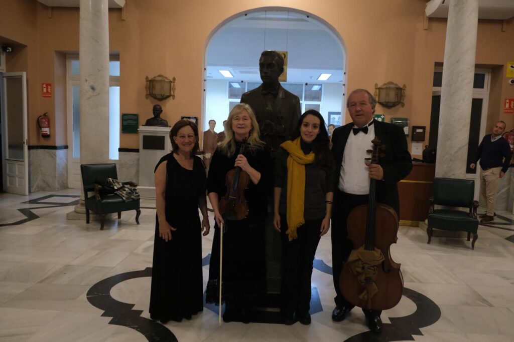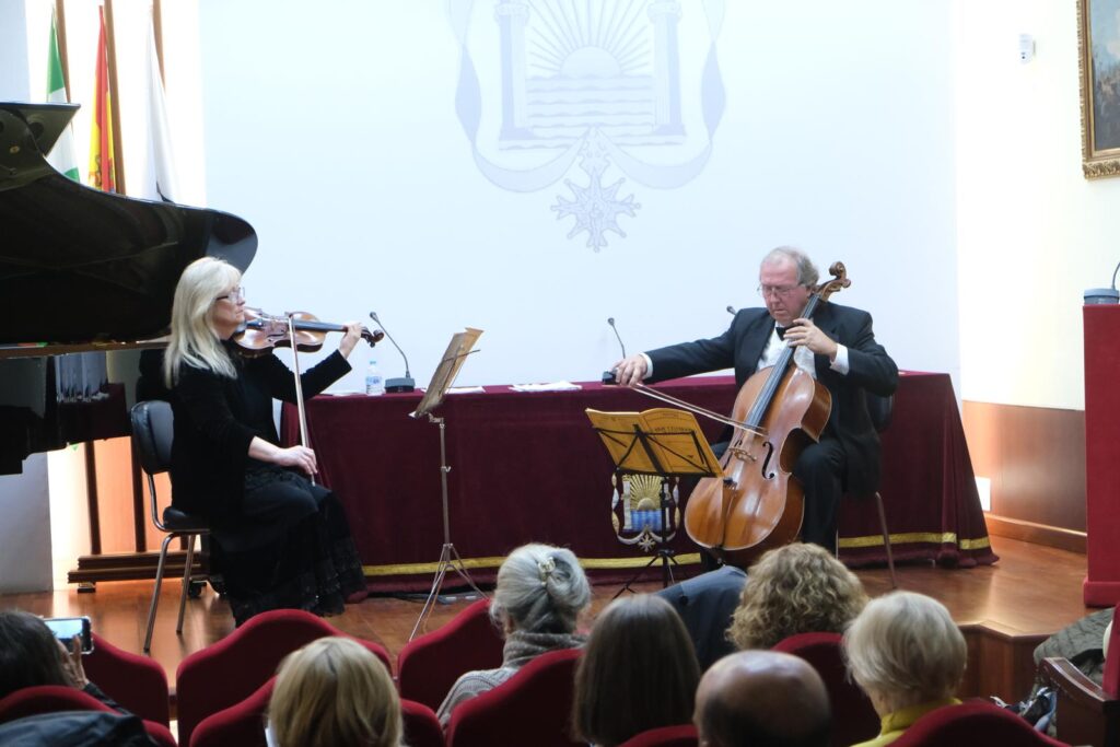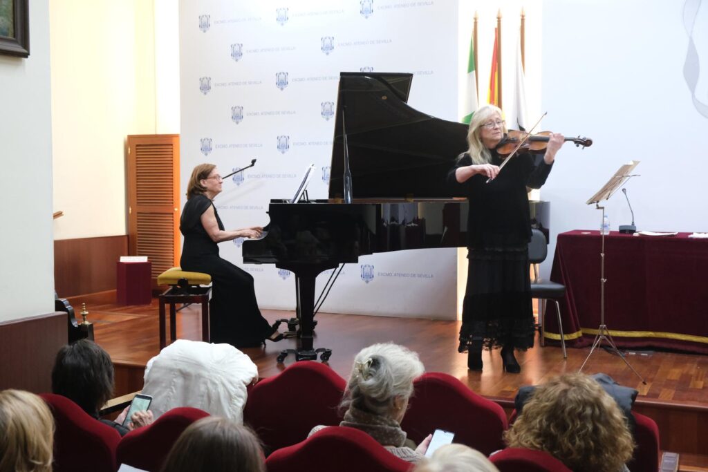 El pasado miércoles 26 de octubre, el salón de actos del Excmo. Ateneo de Sevilla acogió un destacado concierto de música de cámara bajo el título «Dúos y Tríos», ofrecido por la violinista Clare Applewhite y el Dúo Gee-Mackey, formado por David Gee (violonchelo) y Lynne Mackey (piano). La sesión, organizada por la Sección de Música del Ateneo, reunió a numerosos asistentes que disfrutaron de una brillante interpretación de repertorio clásico y español.