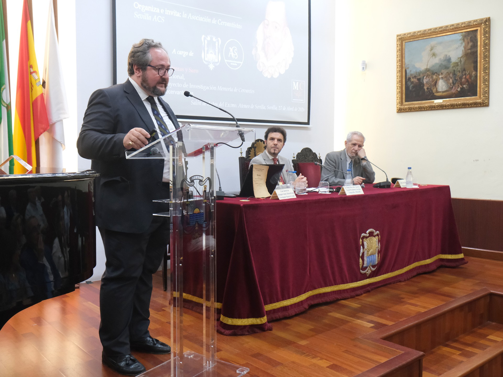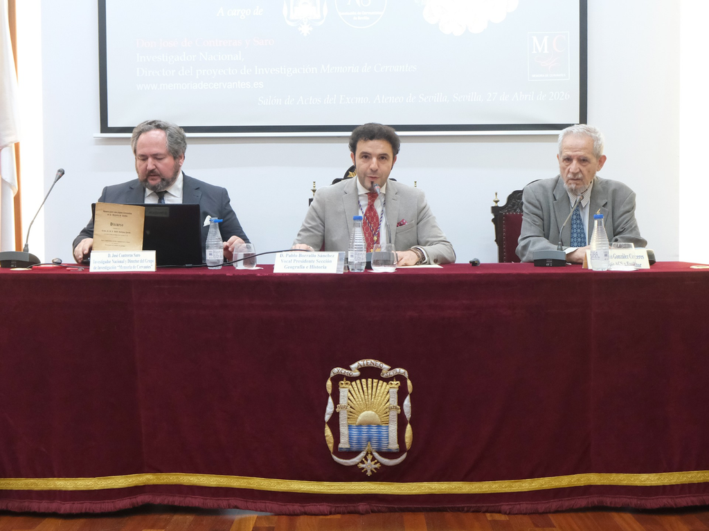 El Excmo. Ateneo de Sevilla celebró el pasado lunes 27 de abril, en su salón de actos, la conferencia titulada «El andaluz don Miguel de Cervantes Saavedra; criado del Rey», impartida por D. José de Contreras y Saro, director del Proyecto de Investigación Memoria de Cervantes, miembro de la Junta Directiva de la Asociación Cervantista de Sevilla, investigador nacional, profesor de la Universidad de Sevilla y miembro del Excmo. Ateneo de Sevilla.