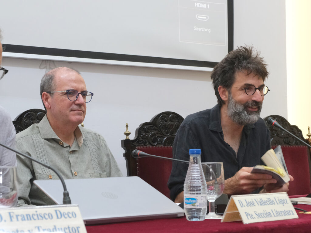 El encuentro estuvo presidido por D. José Vallecillo, presidente de la Sección de Literatura, quien agradeció al autor su desplazamiento hasta Sevilla y su presencia en la Docta Casa. La presentación corrió a cargo del poeta y traductor D. Francisco Deco, acompañado de Dª Rocío Rojas, doctora en Literatura y Estética, quien subrayó el compromiso de la Facultad de Filología de la Universidad de Sevilla en mantener el aula poética activa y viva.