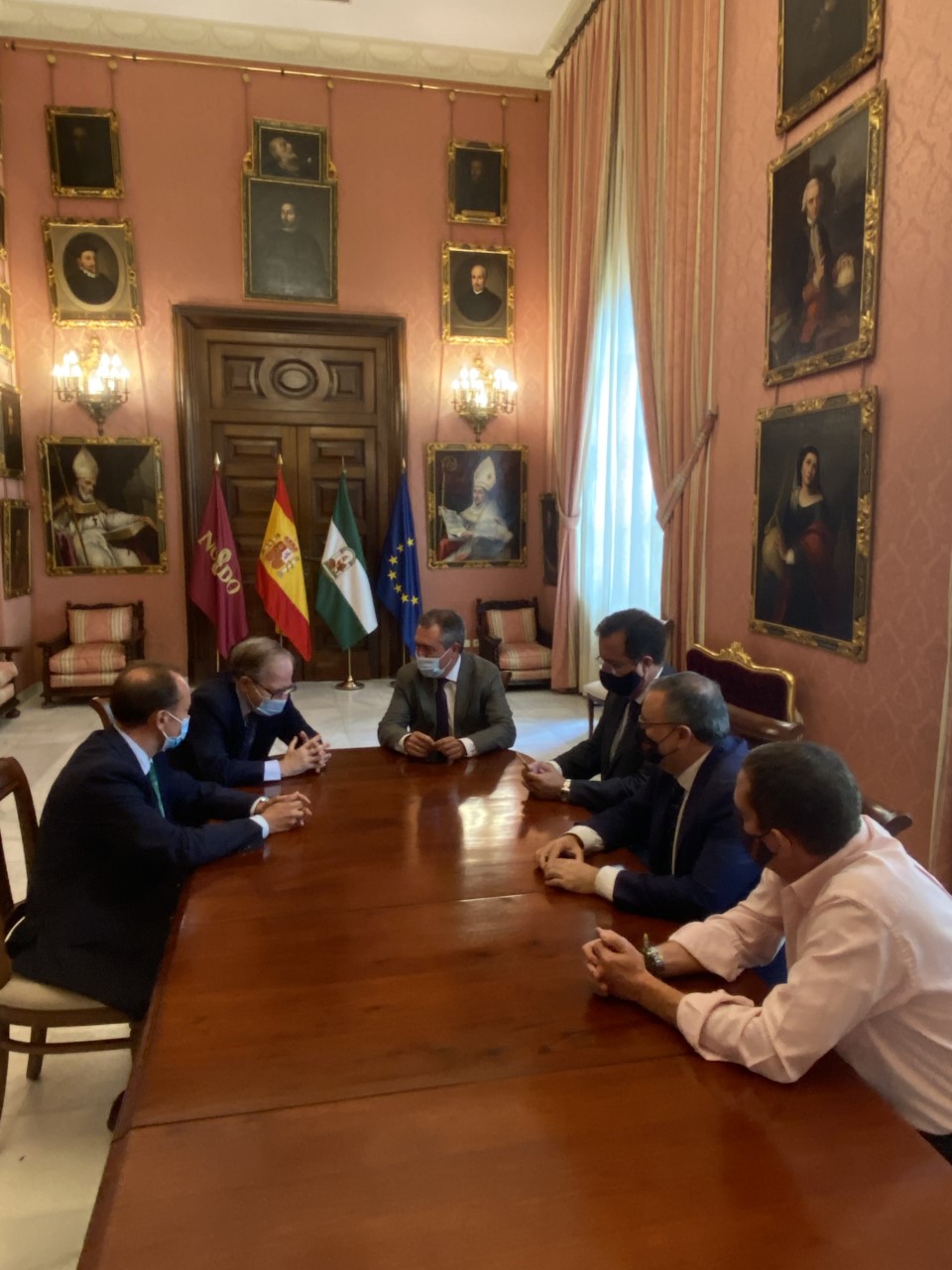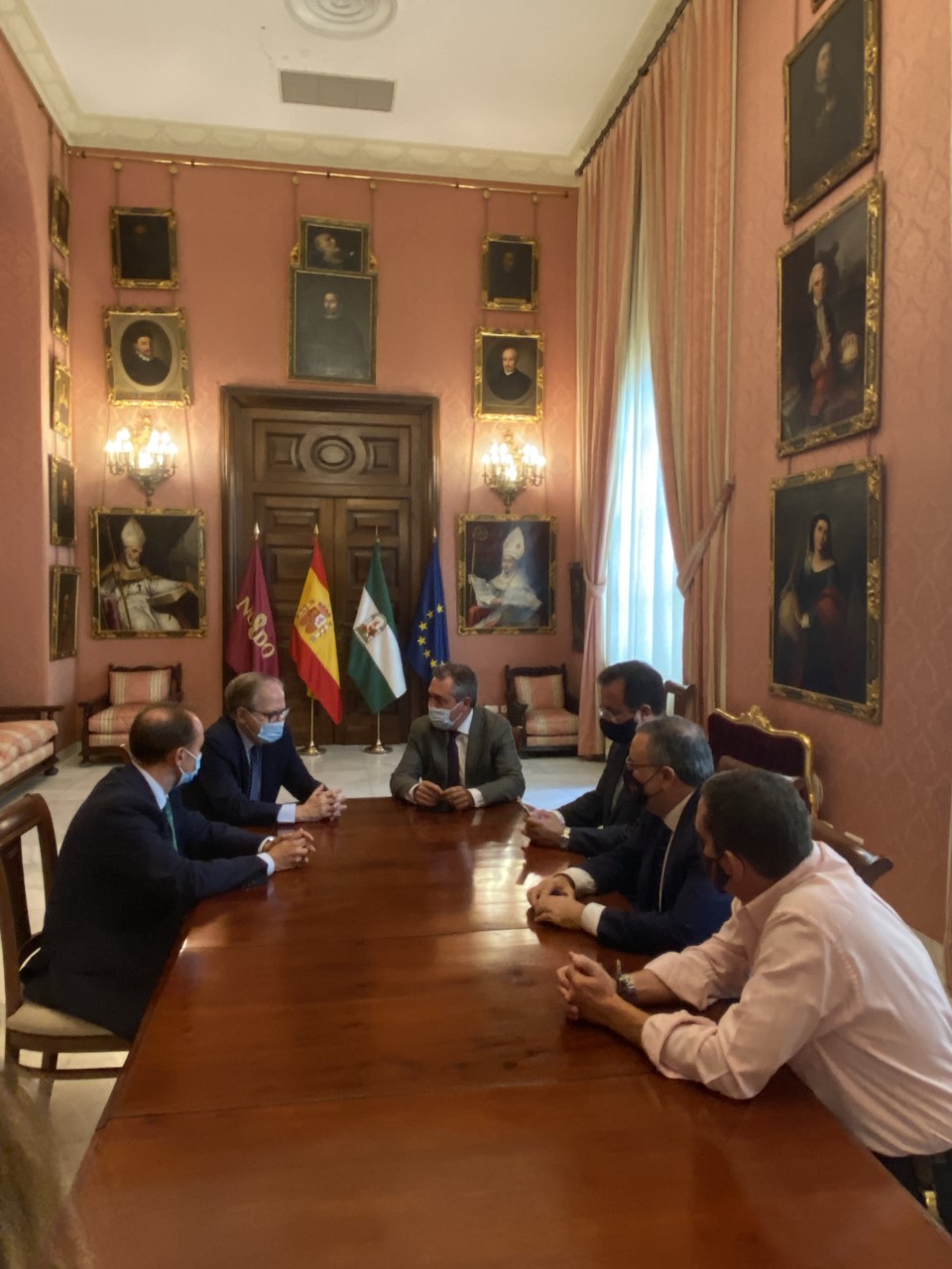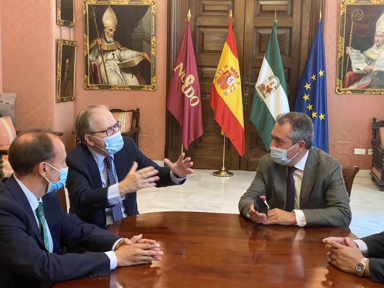 El alcalde de Sevilla, Juan Espadas, junto al delegado de Gobernación y Fiestas Mayores, Juan Carlos Cabrera, se ha reunido hoy con el presidente del Ateneo de Sevilla, Alberto Máximo Calero, para abordar distintas cuestiones relativas a la organización de la Cabalgata de Reyes Magos 2022.