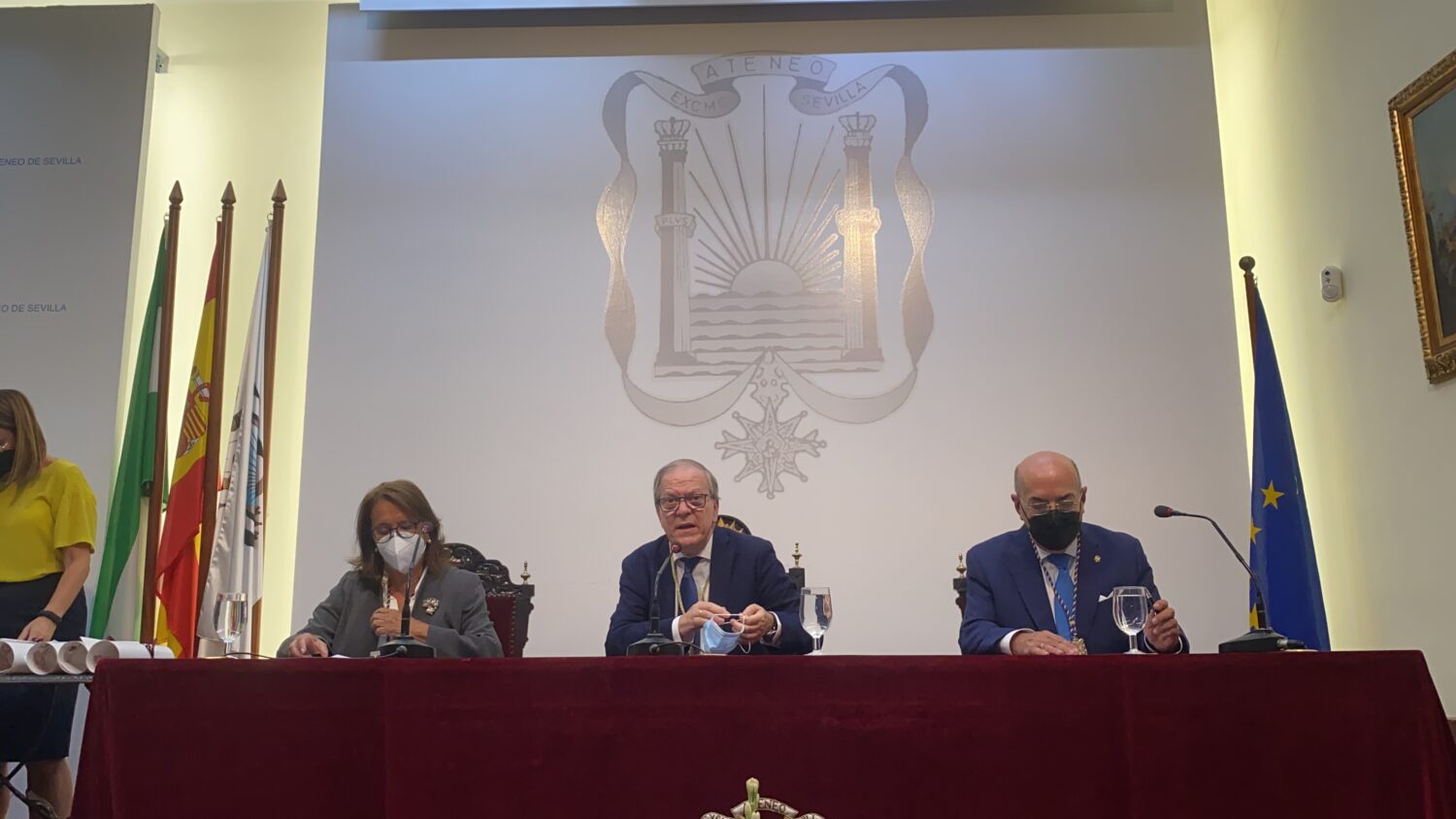 El pasado Martes 5 de octubre en el salón de actos del Ateneo de Sevilla, se entregaron las distinciones a los socios que han cumplido 25 años de pertenencia a esta Docta Casa. Tras la bienvenida de nuestro presidente D. Alberto Máximo Pérez Calero, el secretario, D. Ángel Moliní fué llamando a los socios para que nuestro presidente les fuera entregando su pergamino. Fue un acto sencillo, cargado de sentimientos y emociones, dándose la curiosidad, que el presidente entregó la distinción a uno de sus hijos, e igualmente nuestro compañero Francisco Hernandez, Paco, que también cumplía 25 años como socio. Desde el Ateneo damos la enhorabuena a todos aquellos que cumplieron sus bodas de plata en la institución.