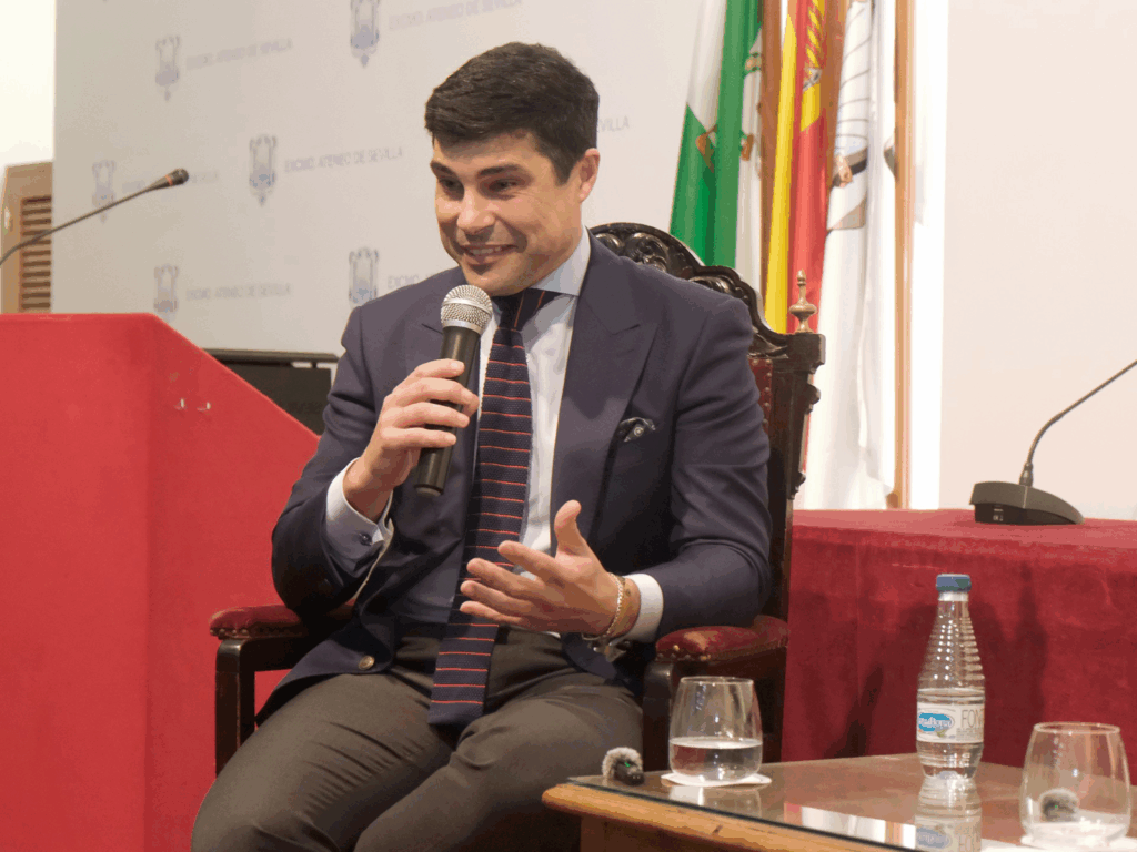 El encuentro fue conducido por el Secretario General del Ateneo, D. Fernando Fabiani Romero, quien entrevistó al pregonero en una conversación que recorrió su trayectoria personal y profesional, su vivencia íntima de la Semana Santa y el proceso emocional que rodea la preparación del Pregón. Durante su intervención, el Secretario General agradeció expresamente al pregonero su disposición para celebrar esta entrevista, pese a las diversas modificaciones de agenda que se produjeron.