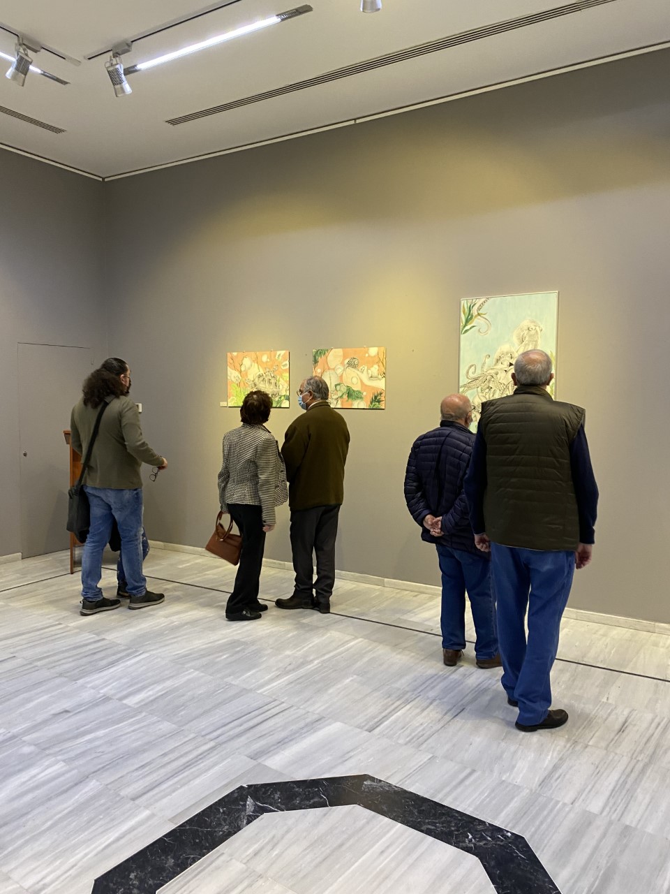 La muestra fue inaugurada por el Vocal de Bellas Artes D. Luis Rizo, el cual dirigió unas palabras a los presentes, en las cuales ensalzo la figura de la artista y su obra, poniendo en valor la pintura en estos tiempos y más aún este tipo de pintura “protesta” que nos ofrece la artista.