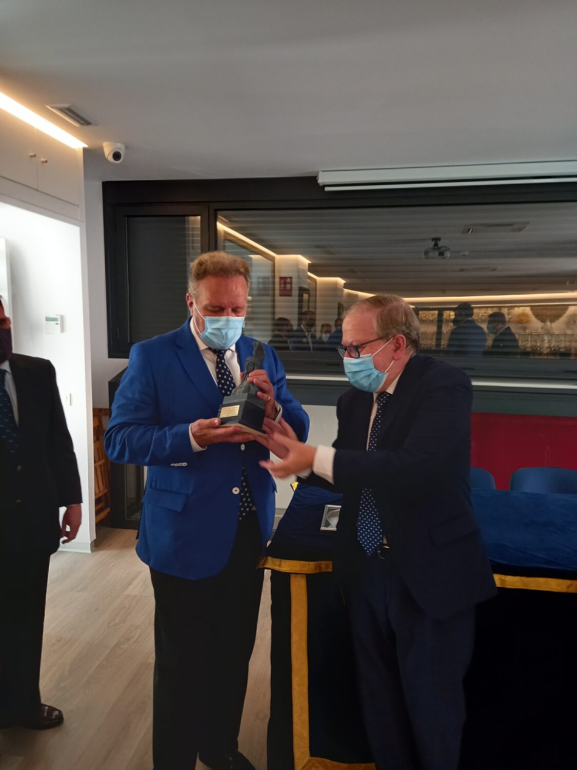 Nuestro presidente, Alberto Máximo Pérez Calero, ha recordado sus primeros pasos como hermano en la hermandad trianera y ha dado las gracias al Hermano Mayor por seguir manteniendo esta tradición de nuestra cabalgata. Del mismo modo se ha entregado una estatuilla de la Diosa Palas Atenea, como signo de agradecimiento a esta hermandad y por los lazos de unión de las mismas.