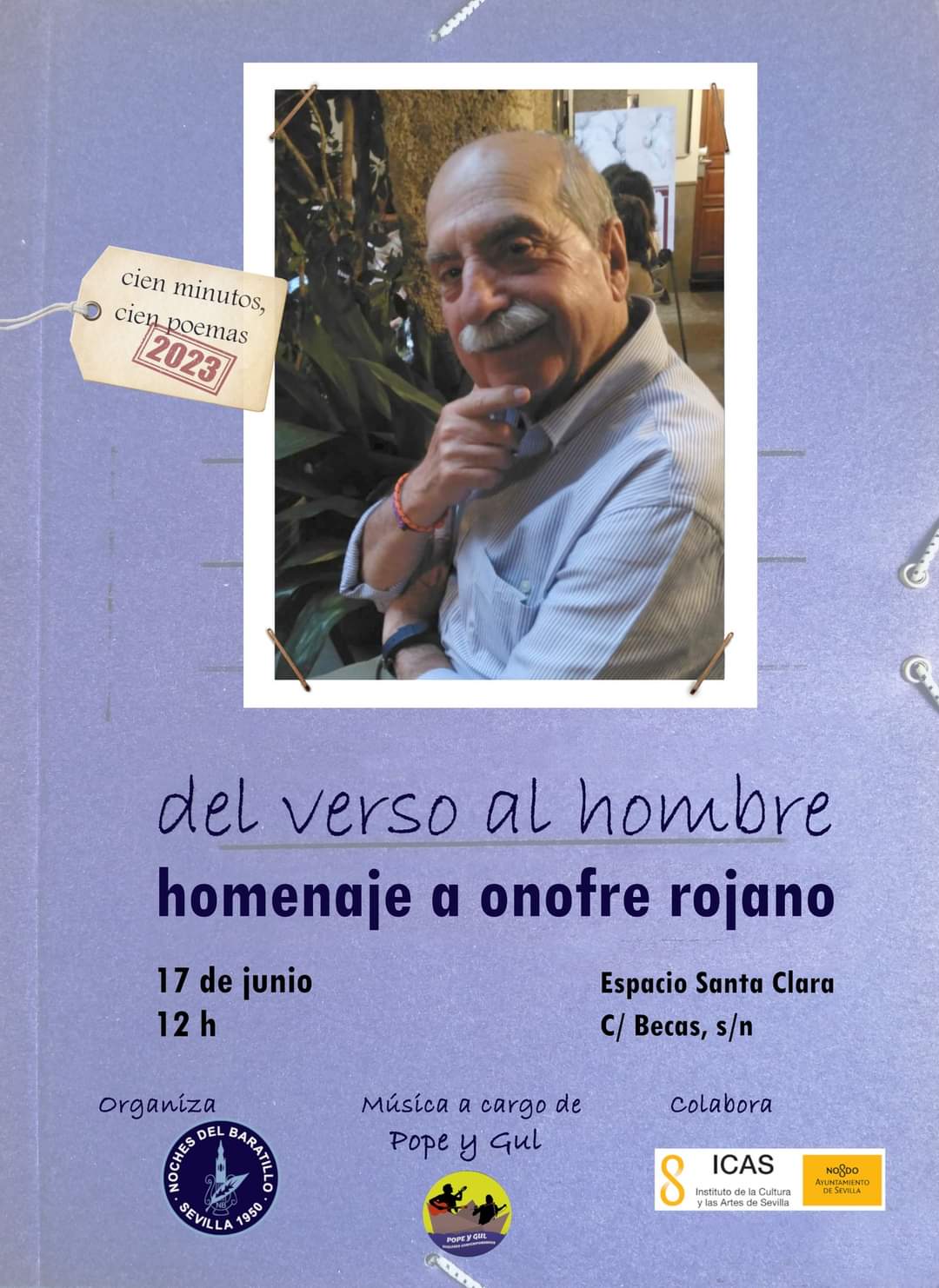 El pasado sábado D. José Vallecillo López, Vocal de la sección de Literatura de esta Docta Casa, participó en el acto homenaje al poeta Onofre Rojano “Del verso al hombre. Cien minutos, cien poemas”. El acto estuvo presentado por Dña. Pilar Alcalá García, poetisa y presidenta de la institución organizadora, “Noches del Baratillo” (con la colaboración del ICAS), y por su vicepresidente, el escritor D. Tomás Sánchez Rubio.