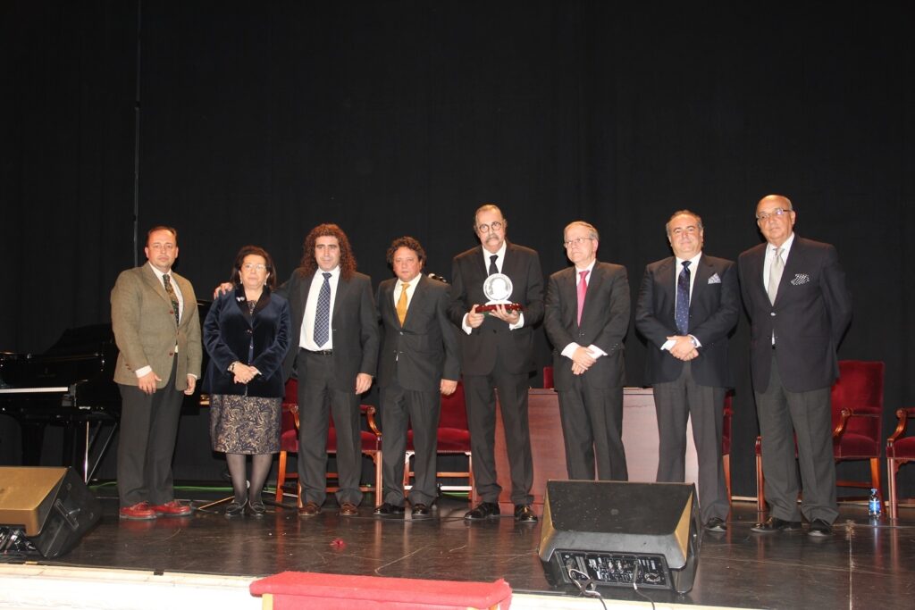 IV memorial de la Asociación de Amigos de Pepe Peregil para Pascual González y Cantores de Hispalis, de manos del Presidente del Ateneo y del Director de la Cabalgata