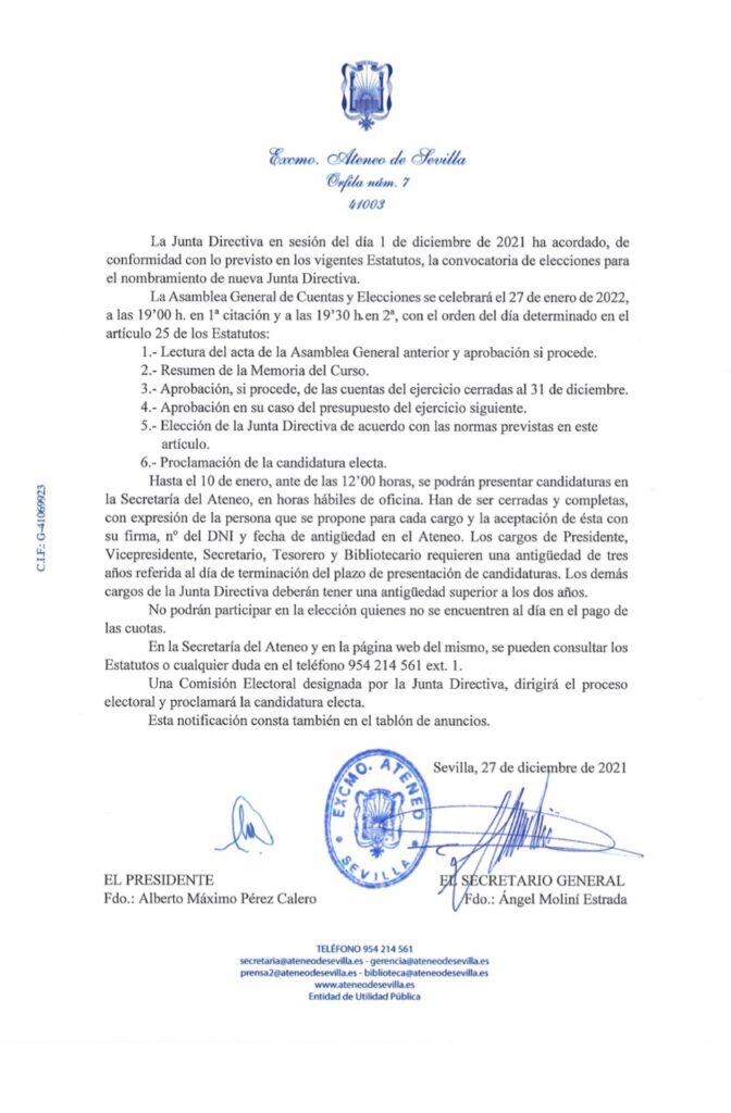 La Junta Direcitiva en sesión del dia 1 de diciembre de 2021 ha acordado, de conformidad con lo...