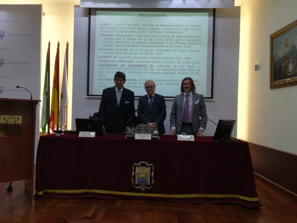 Presentación de los sellos de la #PrimeraVueltaalMundo en el Ateneo #Sevillahoy. El Presidente...