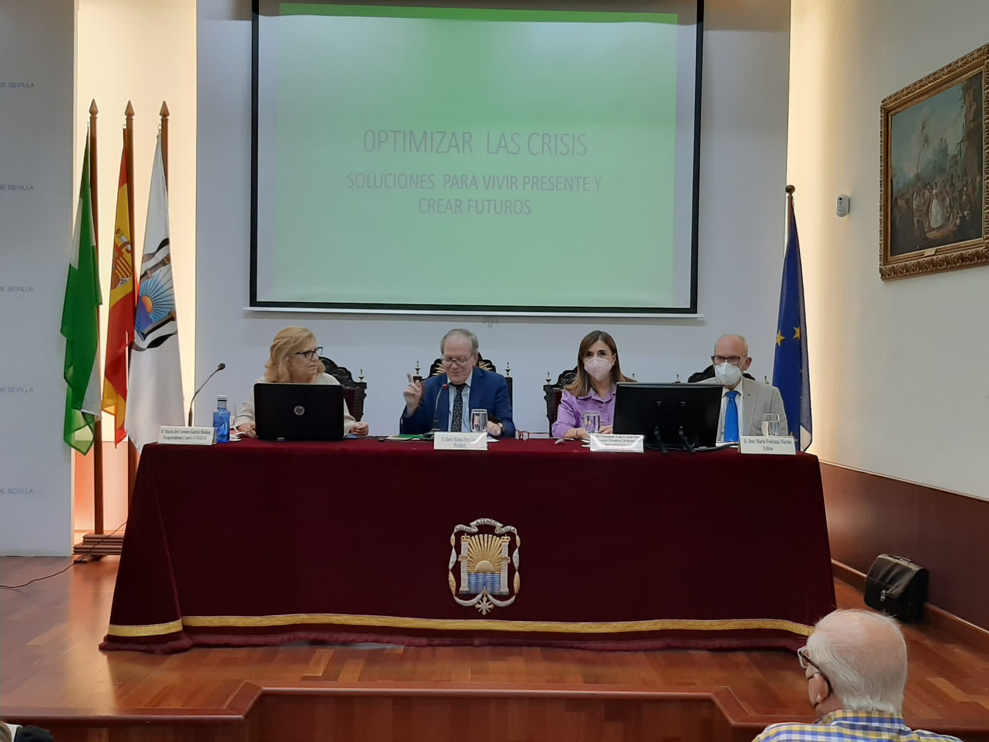El pasado 20 de octubre se presentó en el Ateneo de Sevilla el libro «Optimizar la Crisis, soluciones para vivir Presente y Crear Futuro» de Dña. M. del Cermen Garcia Molina. El acto fue presidido por nuestro presidente, D. Alberto Máximo Pérez Calero.