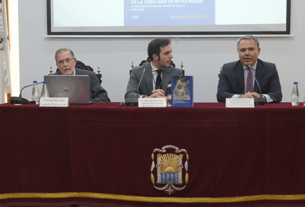 El pasado martes 9 de diciembre de 2025, el Excmo. Ateneo de Sevilla, en colaboración con la Delegación de Fiestas Mayores del Ayuntamiento de Sevilla, celebró en su sede de la calle Orfila la presentación del libro El cartel artístico de la Cabalgata de Reyes Magos: Patrimonio material del Ateneo de Sevilla (1932–2025), una rigurosa investigación del historiador del arte y catedrático emérito D. Gerardo Pérez Calero.