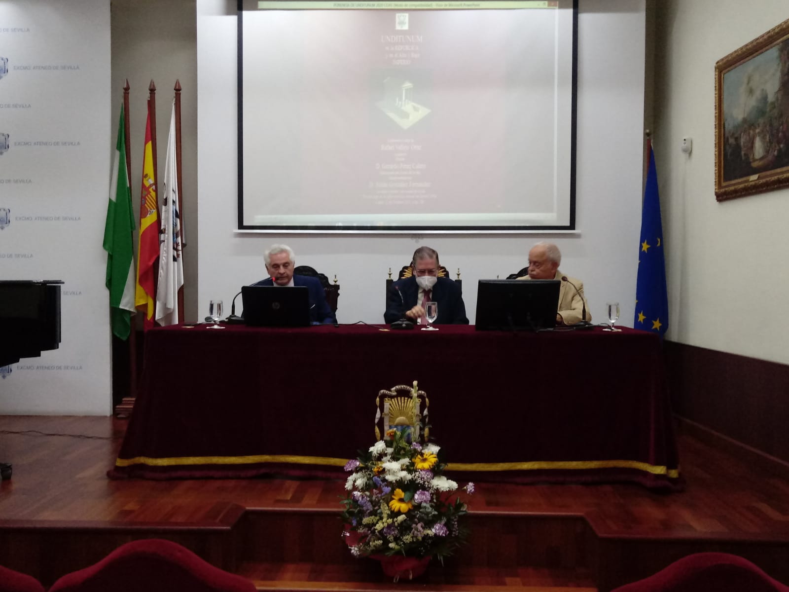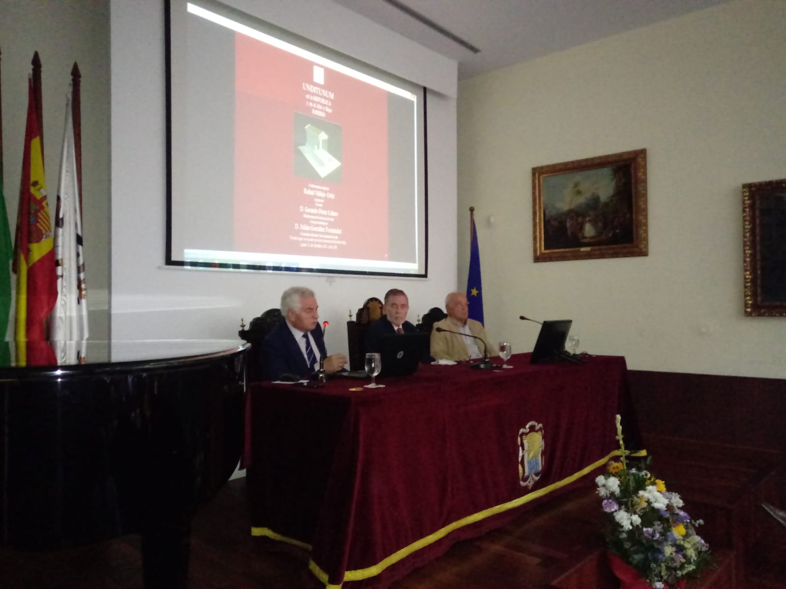El pasado 11 de octubre en el salón de actos del Ateneo de Sevilla, D. Rafael Vallejo Ortiz nos ofreció la conferencia «UNDITUNUM en la republica y en el Alto y Bajo IMPERIO», el acto fue presidido por D. Gerardo Pérez Calero.